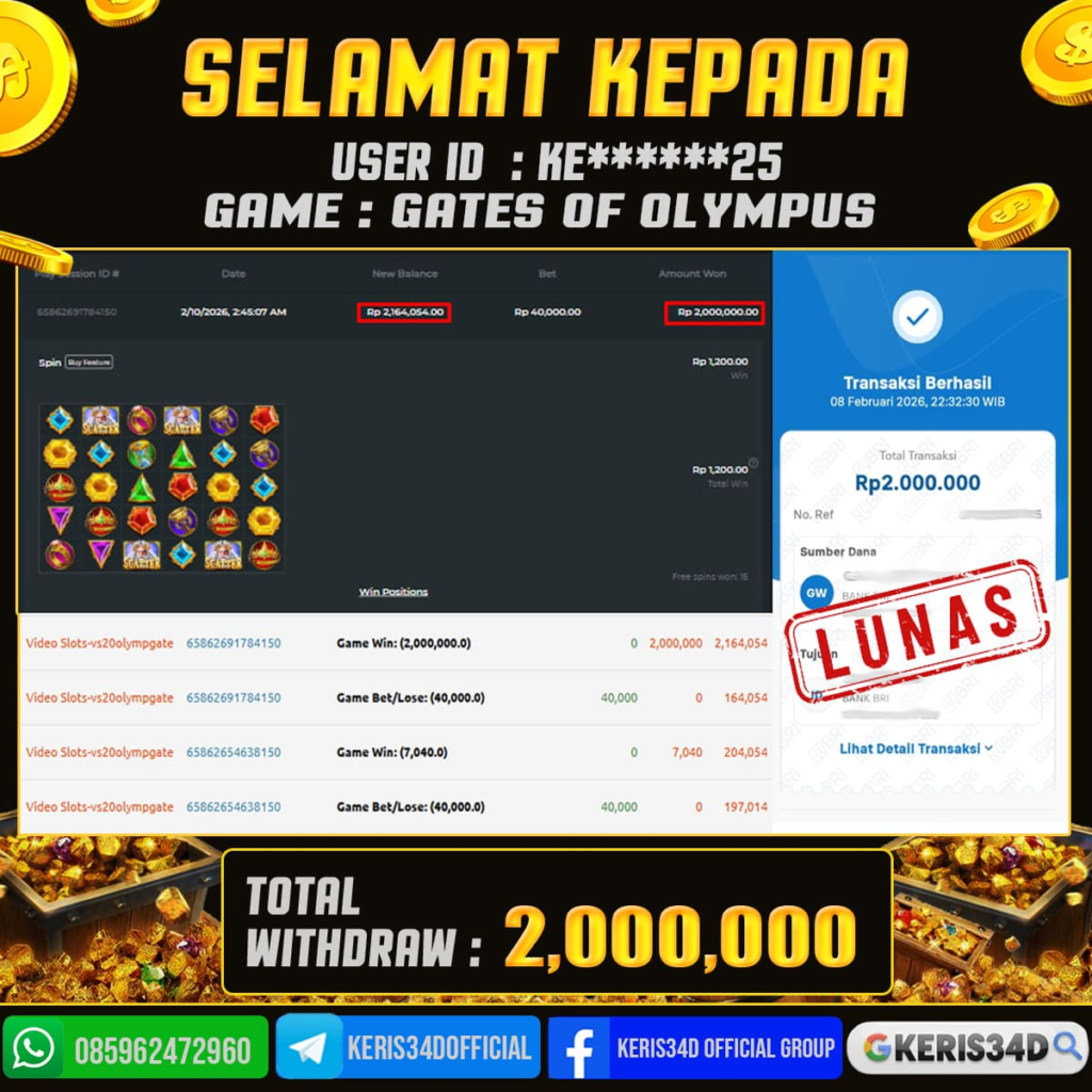 KERIS34D dikenal sebagai situs terpercaya yang selalu menghadirkan pengalaman bermain slot online yang aman, fair, dan berlisensi resmi. Di sini, kami tidak hanya sekadar memberikan janji, tapi bukti nyata berupa slip kemenangan yang dapat Anda lihat secara langsung.