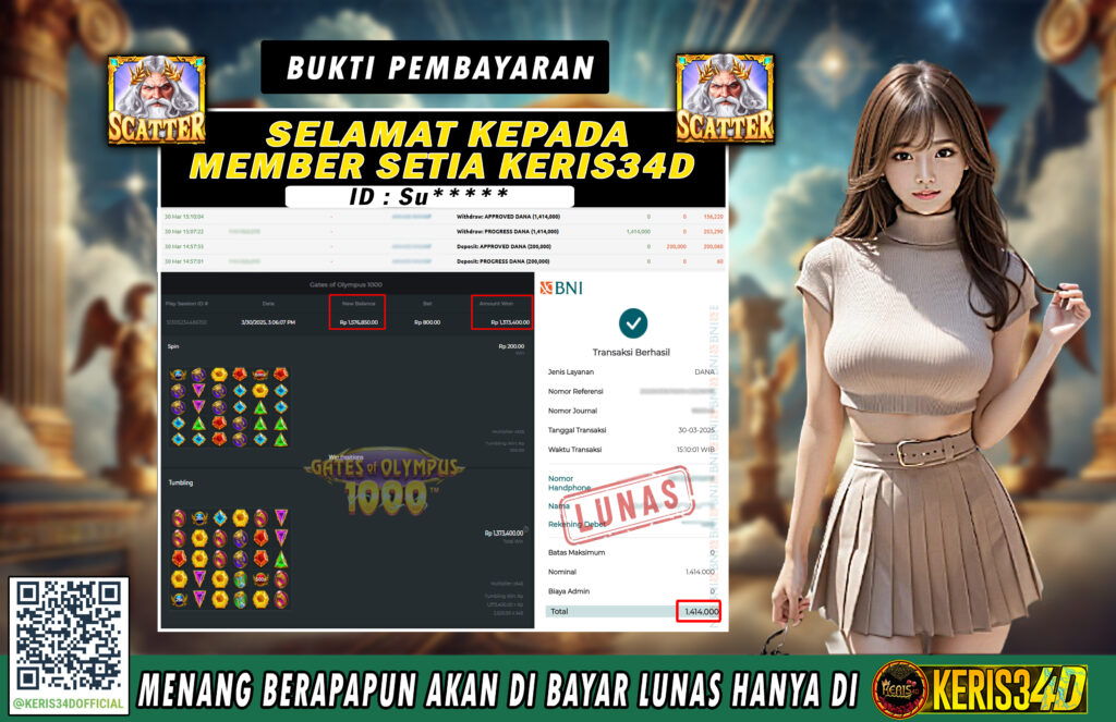 KERIS34D dikenal sebagai situs terpercaya yang selalu menghadirkan pengalaman bermain slot online yang aman, fair, dan berlisensi resmi. Di sini, kami tidak hanya sekadar memberikan janji, tapi bukti nyata berupa slip kemenangan yang dapat Anda lihat secara langsung.