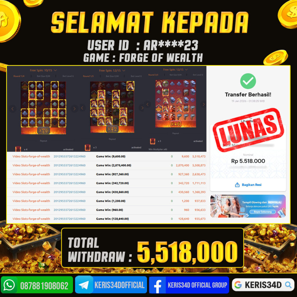 JACKPOT SLOT GACOR MAIN FORGE OF WEALTH 19 JANUARI 2026