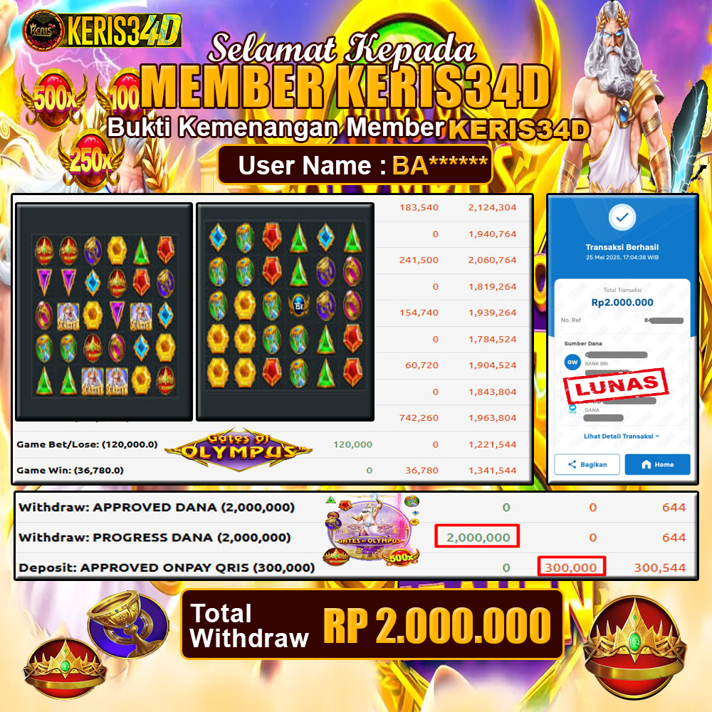 SSetiap hari, member KERIS34D berhasil meraih jackpot besar dari berbagai provider slot ternama yang kami sediakan, seperti Pragmatic Play, Habanero, PG Soft, dan masih banyak lagi. Kami secara rutin menampilkan bukti screenshot atau rekapan kemenangan yang berhasil diraih, mulai dari kemenangan ratusan ribu hingga puluhan juta rupiah. Semua slip kemenangan ini kami hadirkan untuk membuktikan bahwa di KERIS34D peluang menang itu nyata