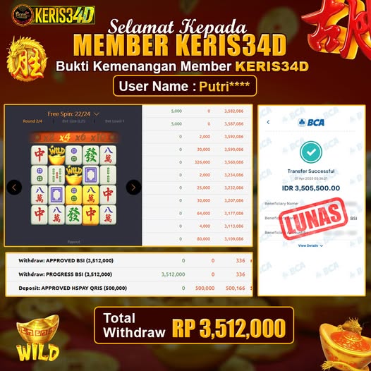 Setiap hari, member KERIS34D berhasil meraih jackpot besar dari berbagai provider slot ternama yang kami sediakan, seperti Pragmatic Play, Habanero, PG Soft, dan masih banyak lagi. Kami secara rutin menampilkan bukti screenshot atau rekapan kemenangan yang berhasil diraih, mulai dari kemenangan ratusan ribu hingga puluhan juta rupiah. Semua slip kemenangan ini kami hadirkan untuk membuktikan bahwa di KERIS34D, peluang menang itu nyata