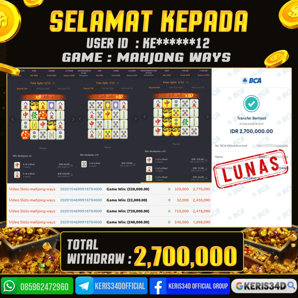 KERIS34D dikenal sebagai situs terpercaya yang selalu menghadirkan pengalaman bermain slot online yang aman, fair, dan berlisensi resmi. Di sini, kami tidak hanya sekadar memberikan janji, tapi bukti nyata berupa slip kemenangan yang dapat Anda lihat secara langsung.