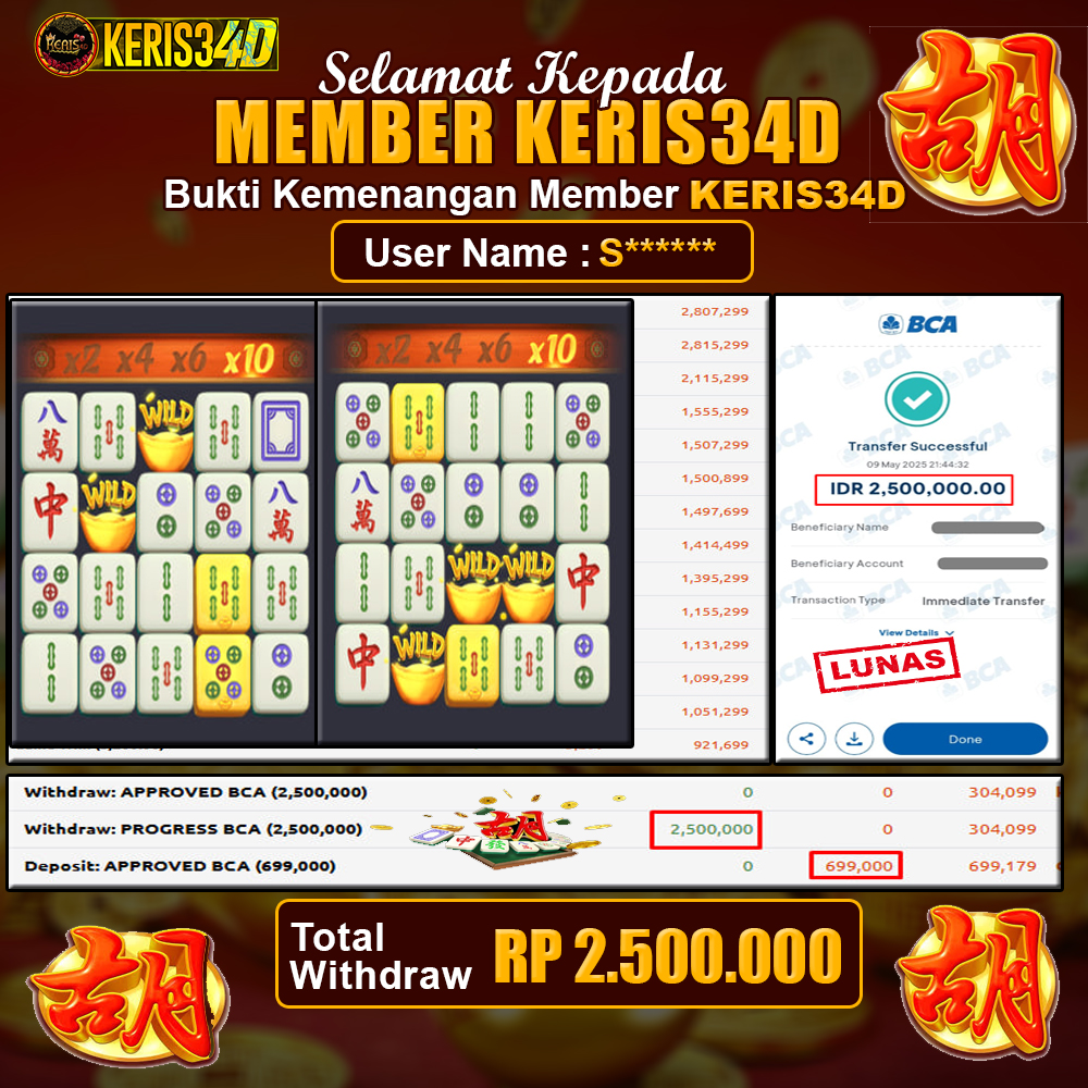 Setiap hari, member KERIS34D berhasil meraih jackpot besar dari berbagai provider slot ternama yang kami sediakan, seperti Pragmatic Play, Habanero, PG Soft, dan masih banyak lagi. Kami secara rutin menampilkan bukti screenshot atau rekapan kemenangan yang berhasil diraih, mulai dari kemenangan ratusan ribu hingga puluhan juta rupiah. Semua slip kemenangan ini kami hadirkan untuk membuktikan bahwa di KERIS34D, peluang menang itu nyata