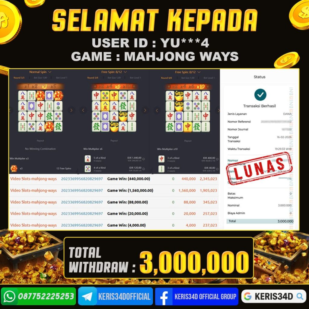 JACKPOT SLOT GACOR MAIN MAHJONG WAYS 16 FEBRUARI 2026