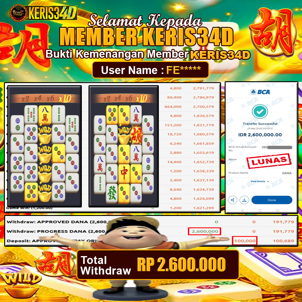 TOTAL KEMENANGAN : Rp. 2.600.000
