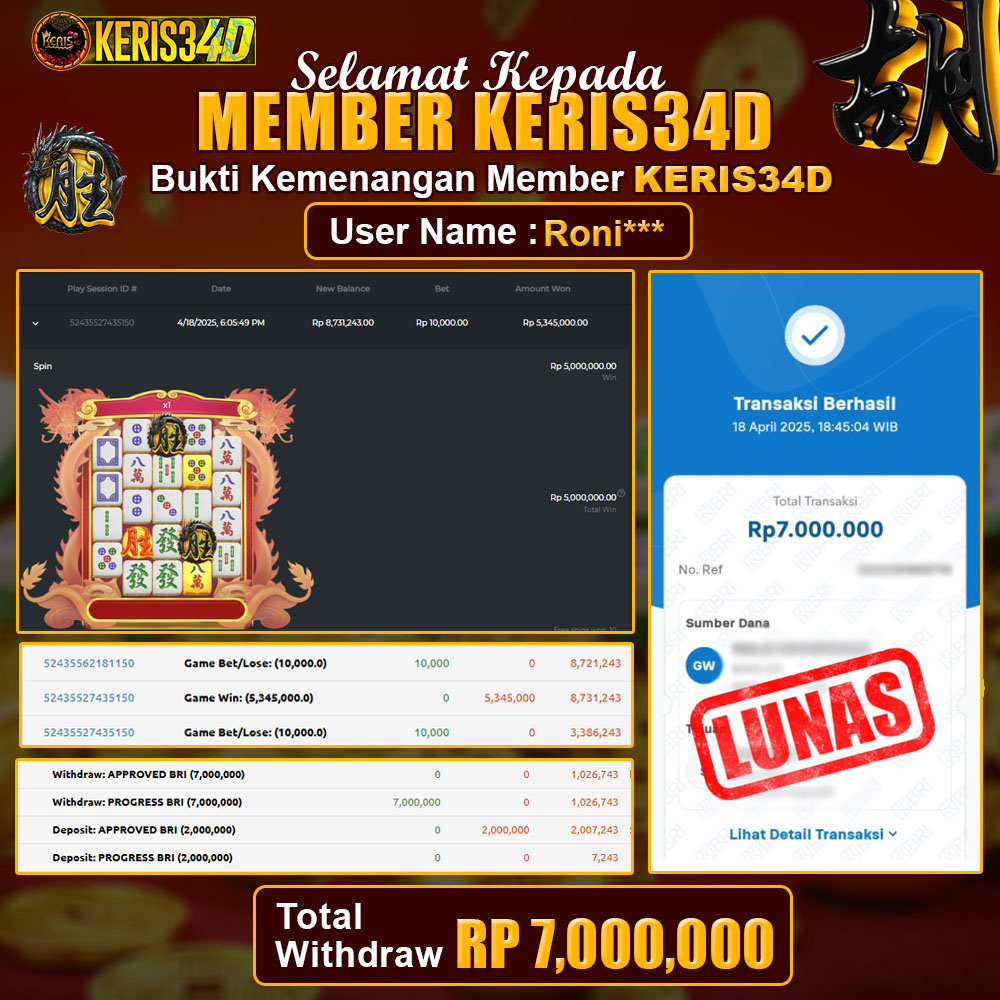 KERIS34D dikenal sebagai situs terpercaya yang selalu menghadirkan pengalaman bermain slot online yang aman, fair, dan berlisensi resmi. Di sini, kami tidak hanya sekadar memberikan janji, tapi bukti nyata berupa slip kemenangan yang dapat Anda lihat secara langsung.