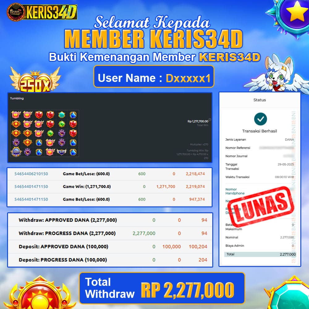 SSetiap hari, member KERIS34D berhasil meraih jackpot besar dari berbagai provider slot ternama yang kami sediakan, seperti Pragmatic Play, Habanero, PG Soft, dan masih banyak lagi. Kami secara rutin menampilkan bukti screenshot atau rekapan kemenangan yang berhasil diraih, mulai dari kemenangan ratusan ribu hingga puluhan juta rupiah. Semua slip kemenangan ini kami hadirkan untuk membuktikan bahwa di KERIS34D, peluang menang itu nyata