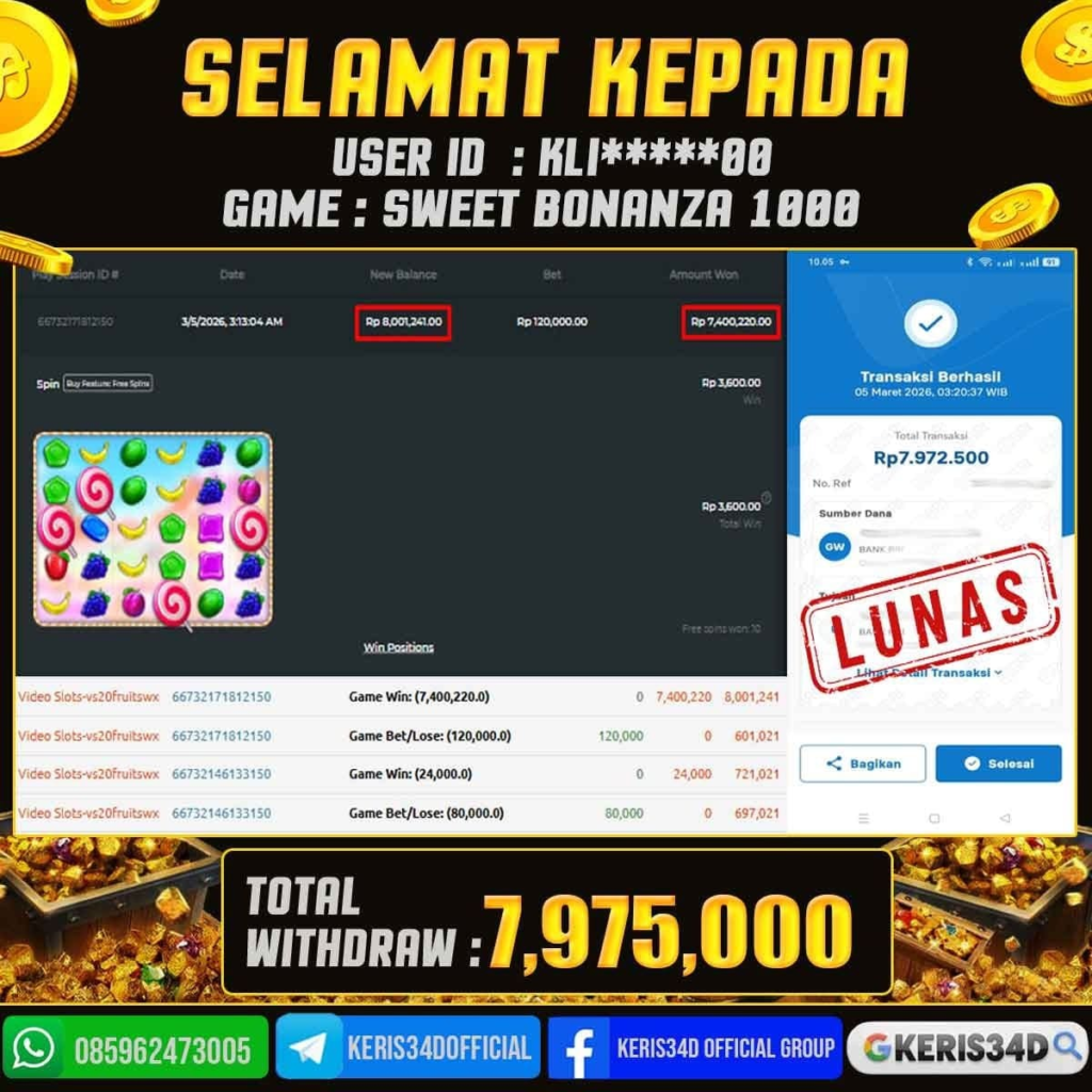 KERIS34D dikenal sebagai situs terpercaya yang selalu menghadirkan pengalaman bermain slot online yang aman, fair, dan berlisensi resmi. Di sini, kami tidak hanya sekadar memberikan janji, tapi bukti nyata berupa slip kemenangan yang dapat Anda lihat secara langsung.