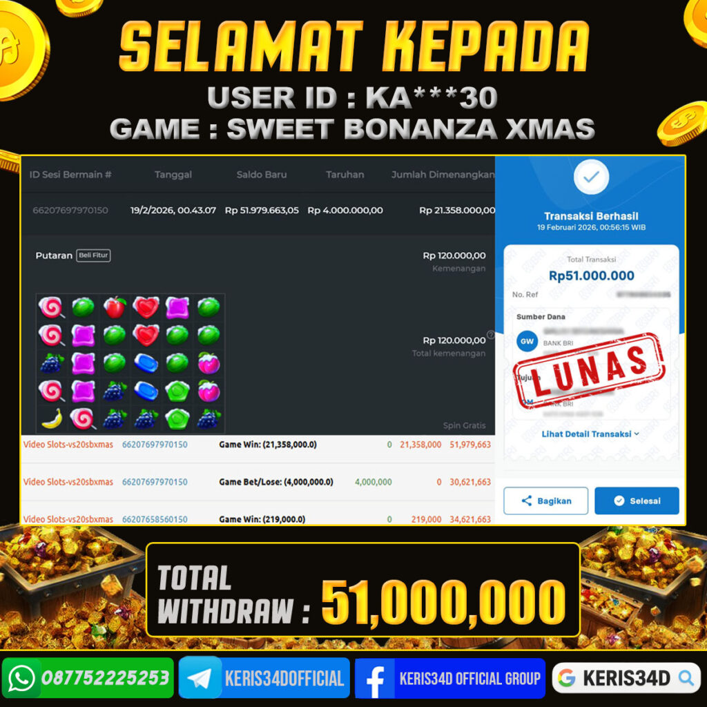 JACKPOT SLOT GACOR MAIN SWEET BONANZA XMAS 19 FEBRUARI 2026, Jackpot Slot Gacor, Kemenangan Slot, Bukti Kemenangan Slot, Kemenangan PRAGMATIC PLAY, Menang Slot online, Slot Gacor, Situs Aman Terpercaya, WD Berapapun Pasti DI Bayar Tuntas, Maxwin Slot Online.
