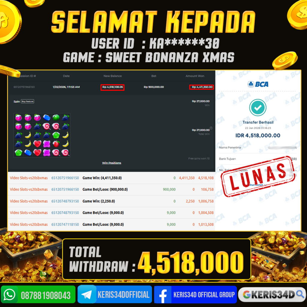 TOTAL KEMENANGAN : Rp. 4.518.000