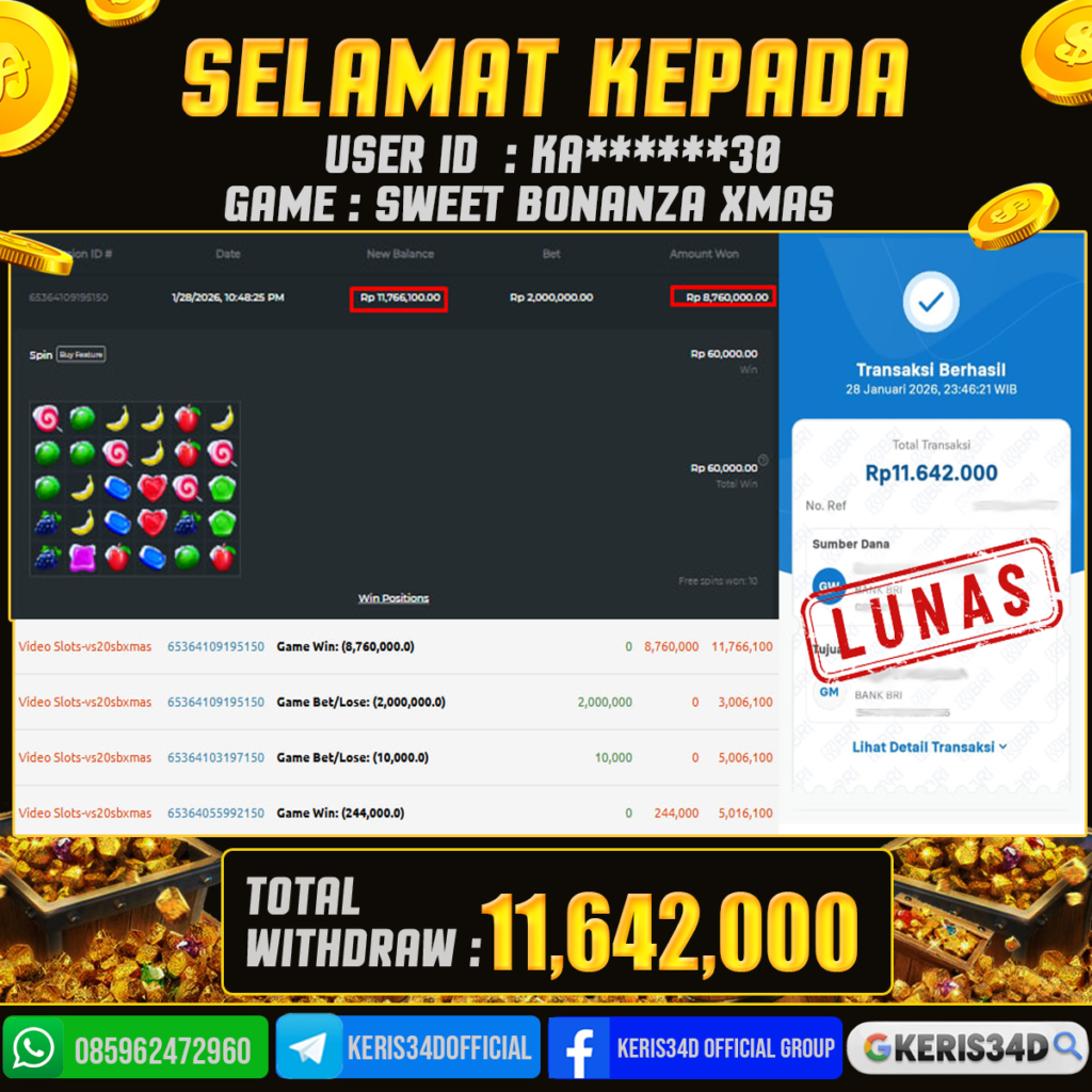 TOTAL KEMENANGAN : Rp. 11.642.000