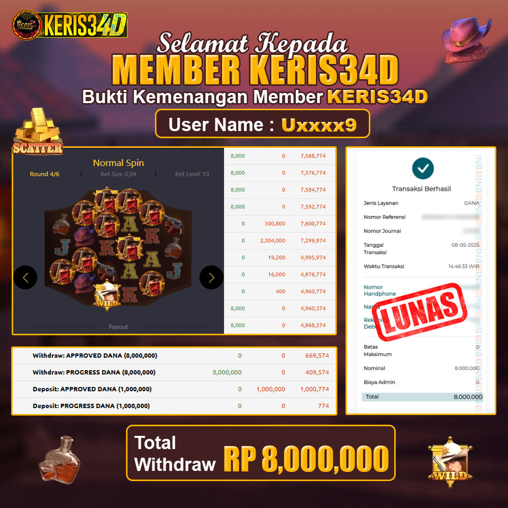 Setiap hari, member KERIS34D berhasil meraih jackpot besar dari berbagai provider slot ternama yang kami sediakan, seperti Pragmatic Play, Habanero, PG Soft, dan masih banyak lagi. Kami secara rutin menampilkan bukti screenshot atau rekapan kemenangan yang berhasil diraih, mulai dari kemenangan ratusan ribu hingga puluhan juta rupiah. Semua slip kemenangan ini kami hadirkan untuk membuktikan bahwa di KERIS34D, peluang menang itu nyata