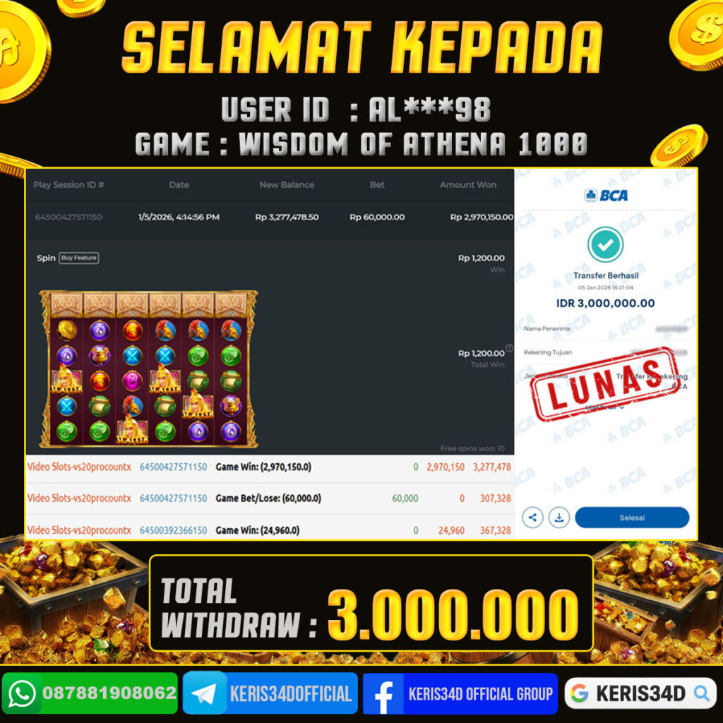 JACKPOT SLOT GACOR MAIN WISDOM OF ATHENA 1000 05 JANUARI 2026, Jackpot Slot Gacor, Kemenangan Slot, Bukti Kemenangan Slot, Kemenangan PRAGMATIC PLAY, Menang Slot online, Slot Gacor, Situs Aman Terpercaya, WD Berapapun Pasti DI Bayar Tuntas, Maxwin Slot Online.